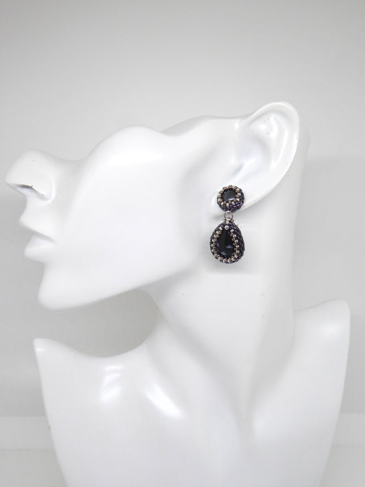 Les cabochons de pierres fines sont sertis en tissage de perles, au fil et à l'aiguille, et montés en boucles d'oreilles sur des attaches en métaux hypoallergéniques afin d'éviter toute allergie : argent 925/1000, argent 925/1000 doré à l'or fin, gold-filled 14k (or laminé 585/1000).