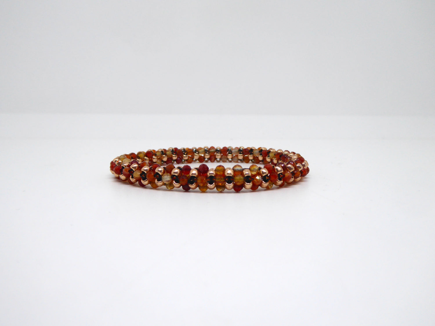 Bracelet de 17 cm tissé main, au fil et à l'aiguille, avec des perles de pierres naturelles de Cornaline et des petites perles de verre.