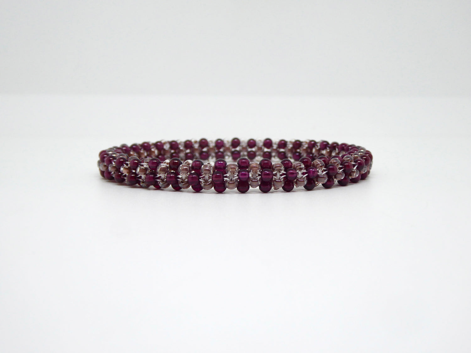 Bracelet de 18 cm tissé main, au fil et à l'aiguille, avec des perles de pierres naturelles de Grenat et des petites perles de verre.