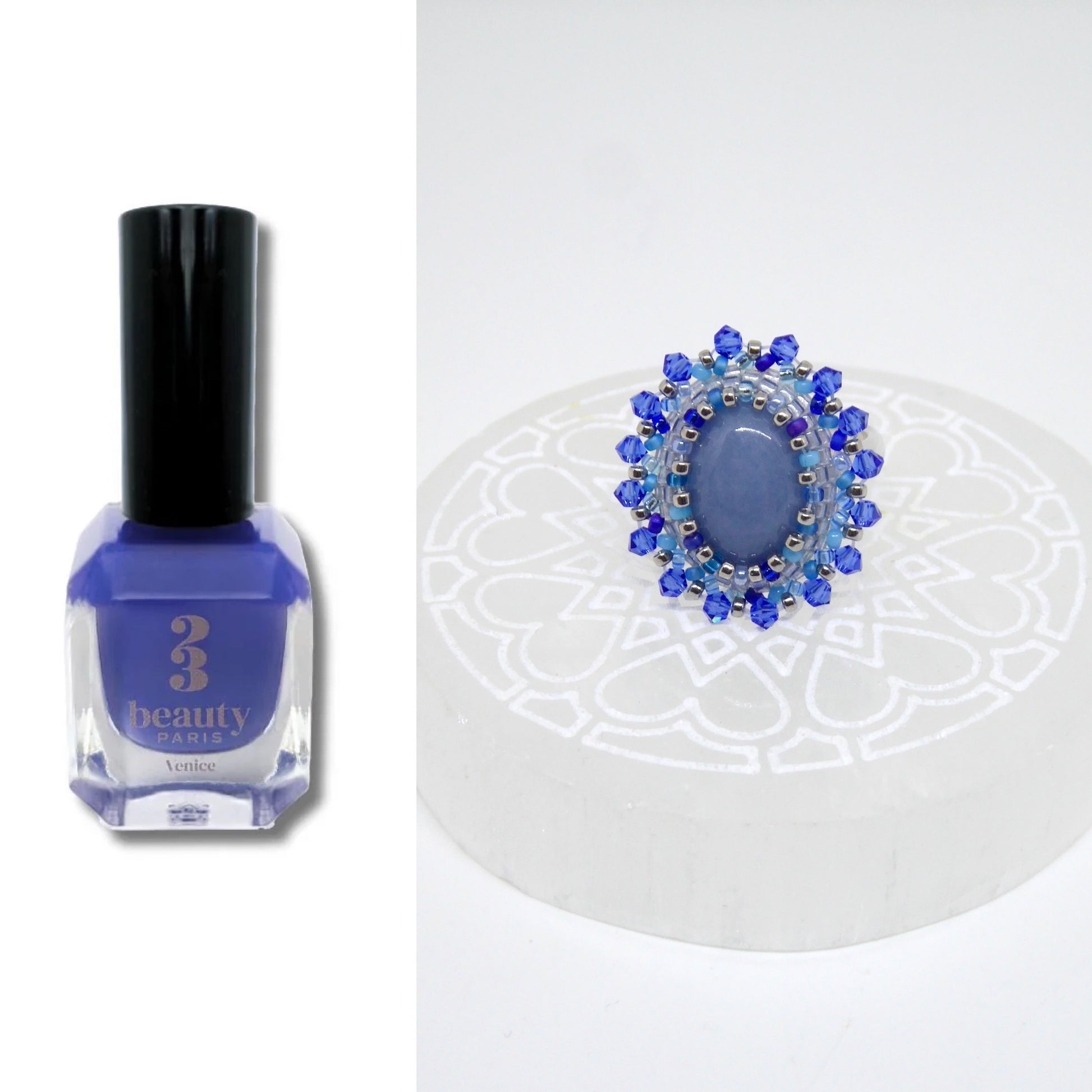 -> Modèle unique associé au vernis Venice de 23BEAUTY : Un parme doux et raffiné, inspiré des couchers de soleil sur la plage Venice.