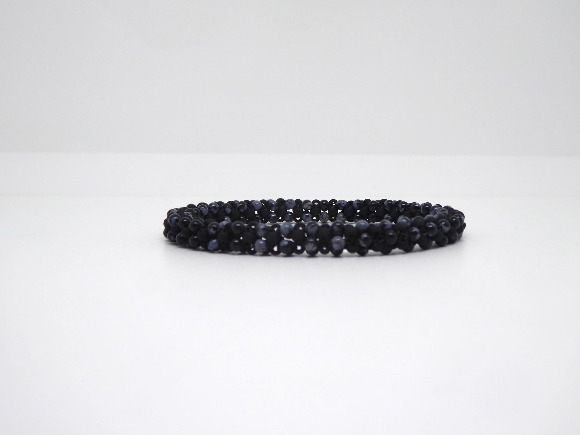 Bracelets tissés main, au fil et à l'aiguille, avec des perles de pierres naturelles et des perles de verre. Bracelets fabriqués avec un fil légèrement stretch, ce qui permet de les rouler sur la main jusqu'au poignet, afin de les enfiler et de les enlever.